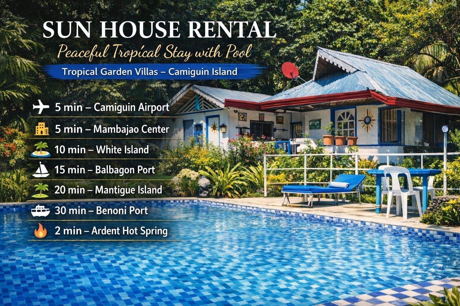 Sun House Rental offers comfortable tropical Villas surrounded by nature, just minutes from Camiguin Airport, white Island and Island's most beautiful attractions.